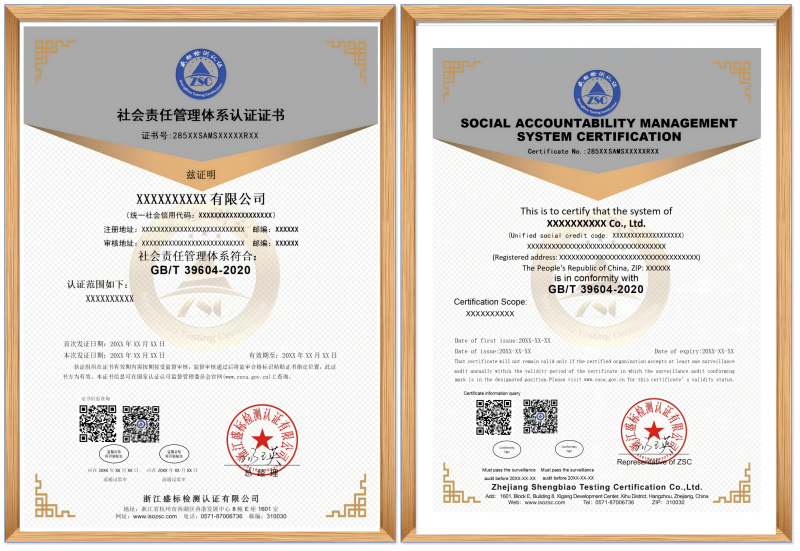 GB∕T 39604-2020 社會(huì )責任管理體系認證證書(shū)樣本: