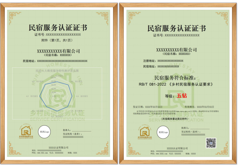 RB/T 081-2022 民宿服務(wù)認證證書(shū)樣本: