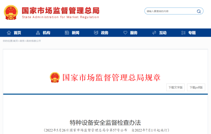 第三條 國家市場(chǎng)監督管理總局負責監督指導全國特種設備安全監督檢查工作,可以根據需要組織開(kāi)展監督檢查。