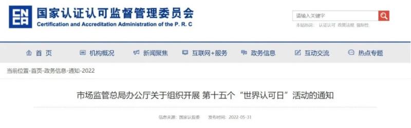市場(chǎng)監管總局辦公廳關(guān)于組織開(kāi)展第十五個(gè)“世界認可日”活動(dòng)的通知